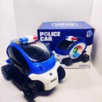 This compact and futuristic Police Car Toy is designed for kids who love action and adventure. Featuring a bold blue-and-white design with a clear police emblem, it comes equipped with vibrant LED lights on top and a rotating disco-style light on the side. The toy is motorized to move around, making it perfect for imaginative play. Packaged in an attractive box, it’s a great gift option for children aged 3 and above. Battery-operated, with built-in music and motion features for an engaging playtime experience.